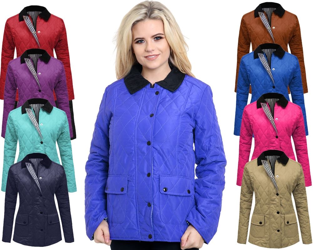 Ladies Womens Long Sleeve Quilted Padded Button Zip Top Jacket Coat Plus Sizes
