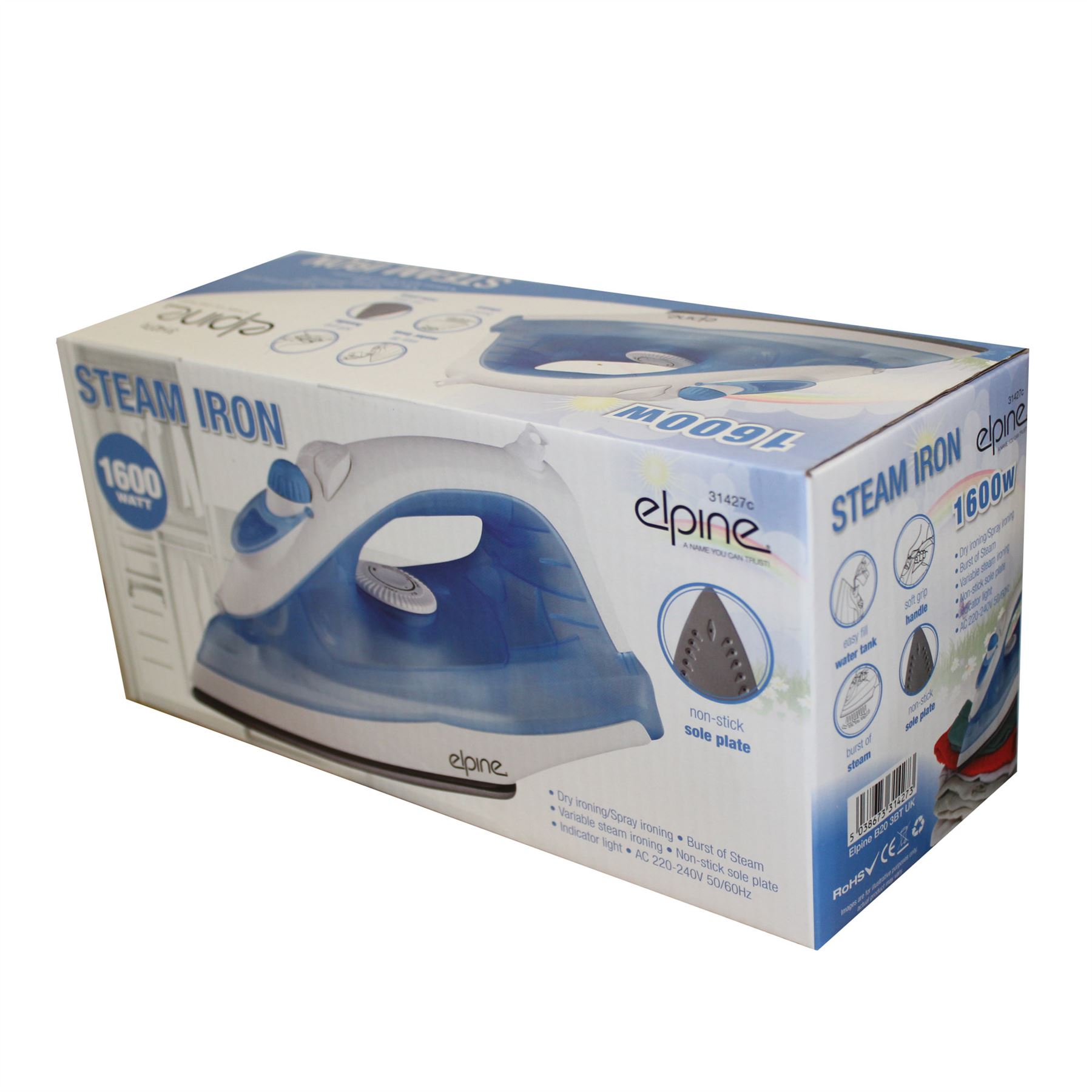 • The Elpine 1600W Steam Iron features a non-stick sole plate for safe and effective use on shirts, dresses and clothing.