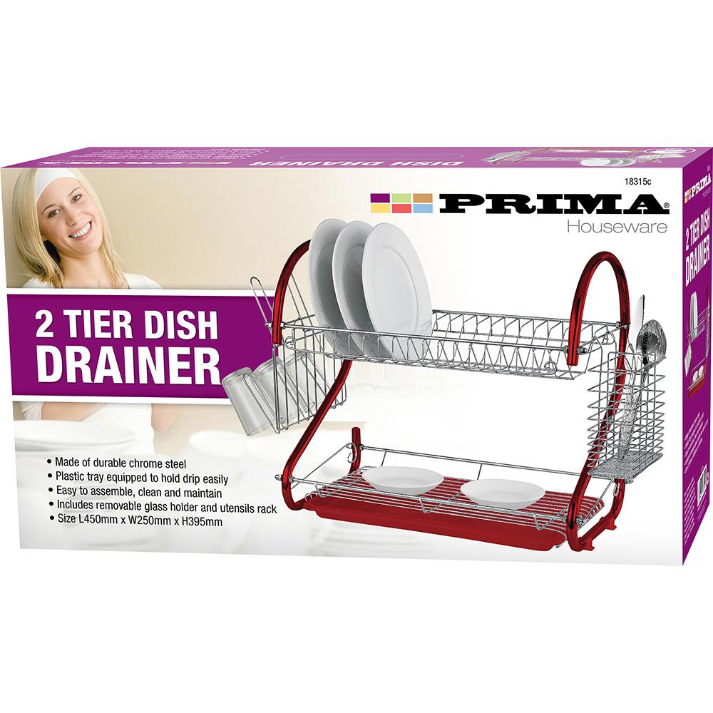 Prima 2 Tier Chrome Plate Dish Cup Cutlery Drainer Rack Drip Tray Plates Holder
