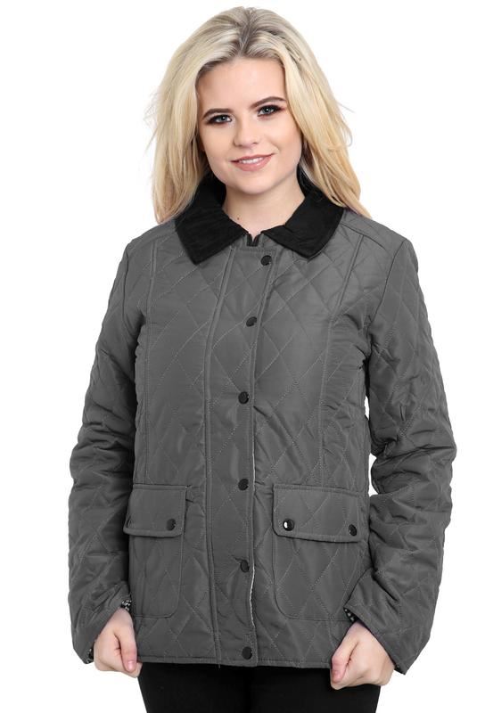 Women’s Quilted Padded Collar Coat Button Zip Top Ladies Jacket UK Size Large